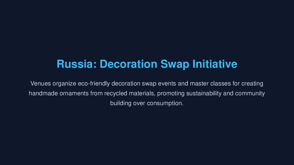 Russia: Decoration Swap InitiativeVenues organize eco-friendly decoration swap events and master classes for creating