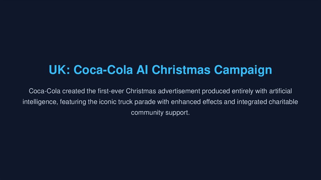 UK: Coca-Cola AI Christmas CampaignCoca-Cola created the first-ever Christmas advertisement produced entirely with artificial