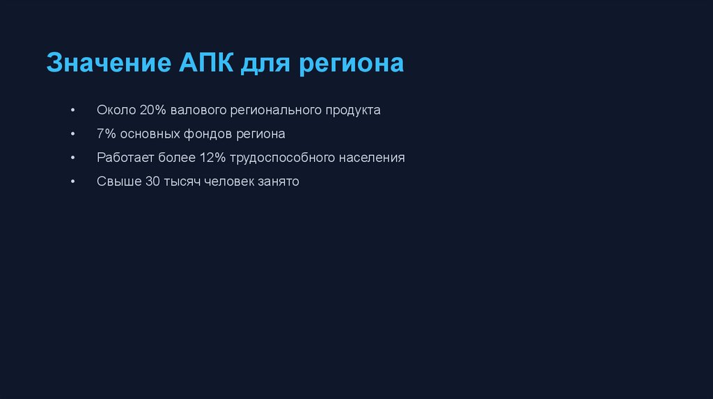 Значение АПК для регионаОколо 20% валового регионального продукта