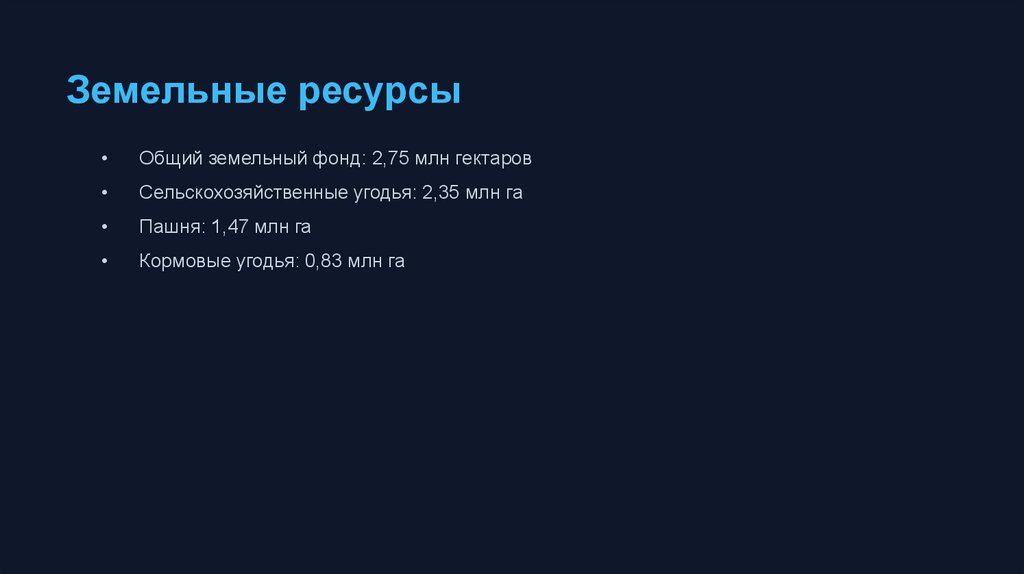 Земельные ресурсыОбщий земельный фонд: 2,75 млн гектаров