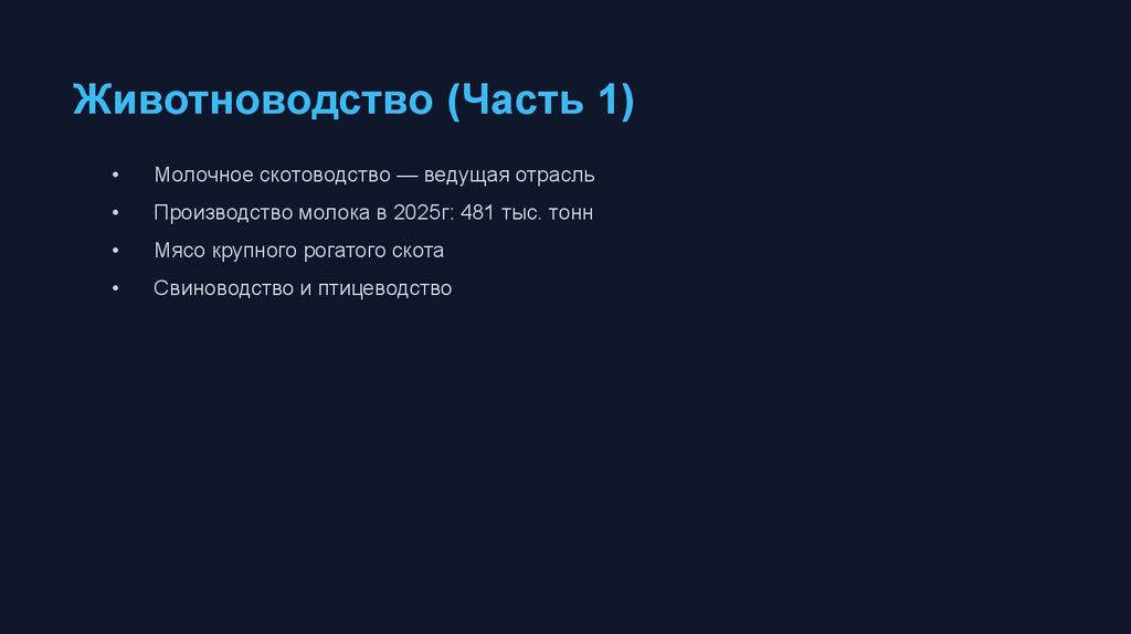 Животноводство (Часть 1)Молочное скотоводство — ведущая отрасль