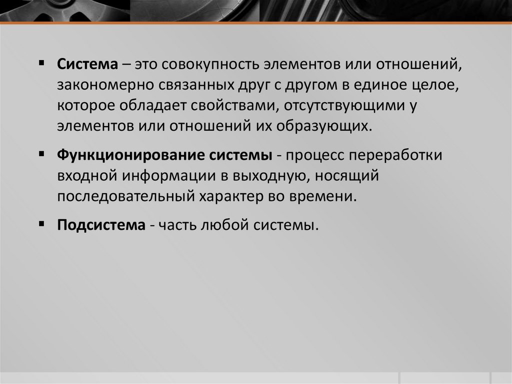 Система – это совокупность элементов или отношений,закономерно связанных друг с другом в единое целое,