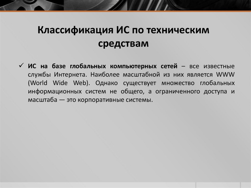 ИС на базе глобальных компьютерных сетей – все известныеслужбы Интернета. Наиболее масштабной из них является WWW