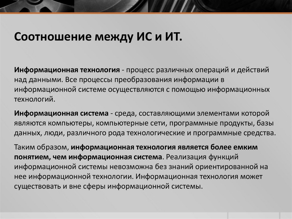 Информационная технология - процесс различных операций и действийнад данными. Все процессы преобразования информации в