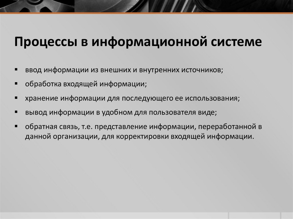 ввод информации из внешних и внутренних источников;обработка входящей информации;