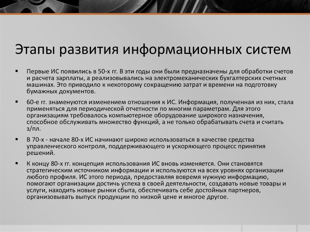 любого профиля. ИС этого периода, предоставляя вовремя нужную информацию,
