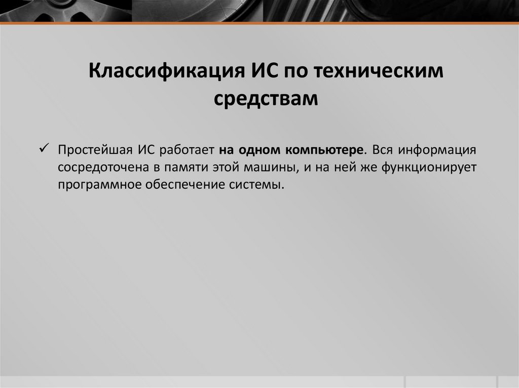 Простейшая ИС работает на одном компьютере. Вся информациясосредоточена в памяти этой машины, и на ней же функционирует