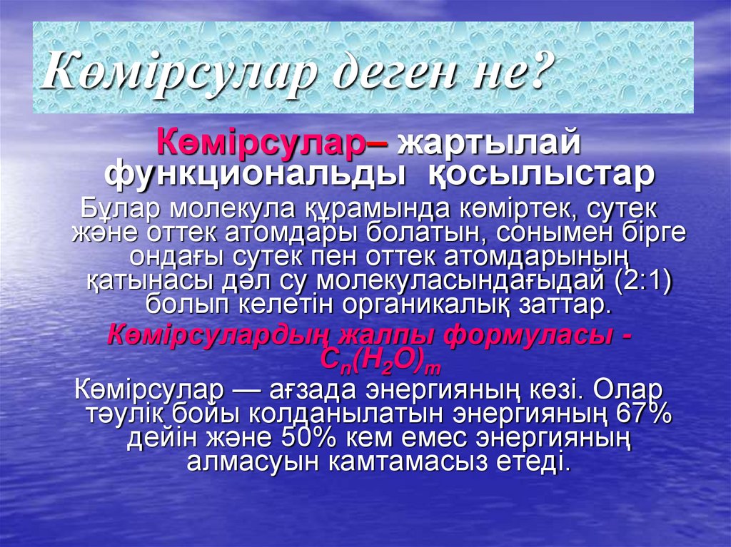 КӨМІРСУЛАР2. Көмірсулар деген не?