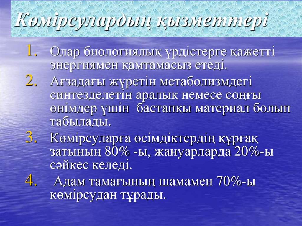 Күнделікті азықтың 60%-ы көмірсудантұрады
