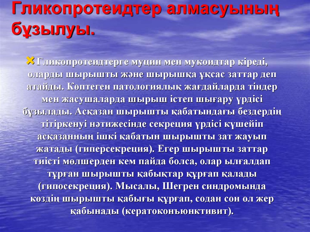 Гликопротеидтерге муцин мен мукоидтар кіреді,оларды шырышты және шырышқа ұқсас заттар деп