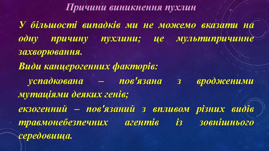 Причини виникнення пухлинУ більшості випадків ми не можемо вказати на