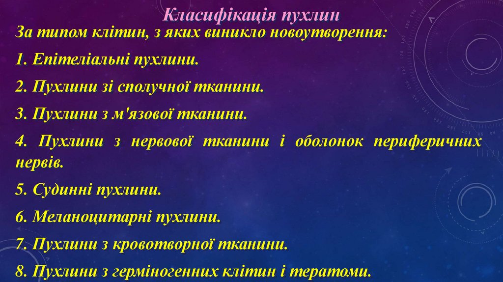 Класифікація пухлинЗа типом клітин, з яких виникло новоутворення: