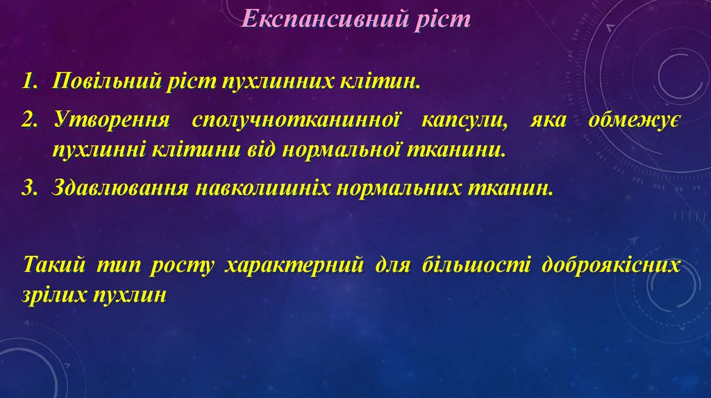 Експансивний ріст1. Повільний ріст пухлинних клітин.