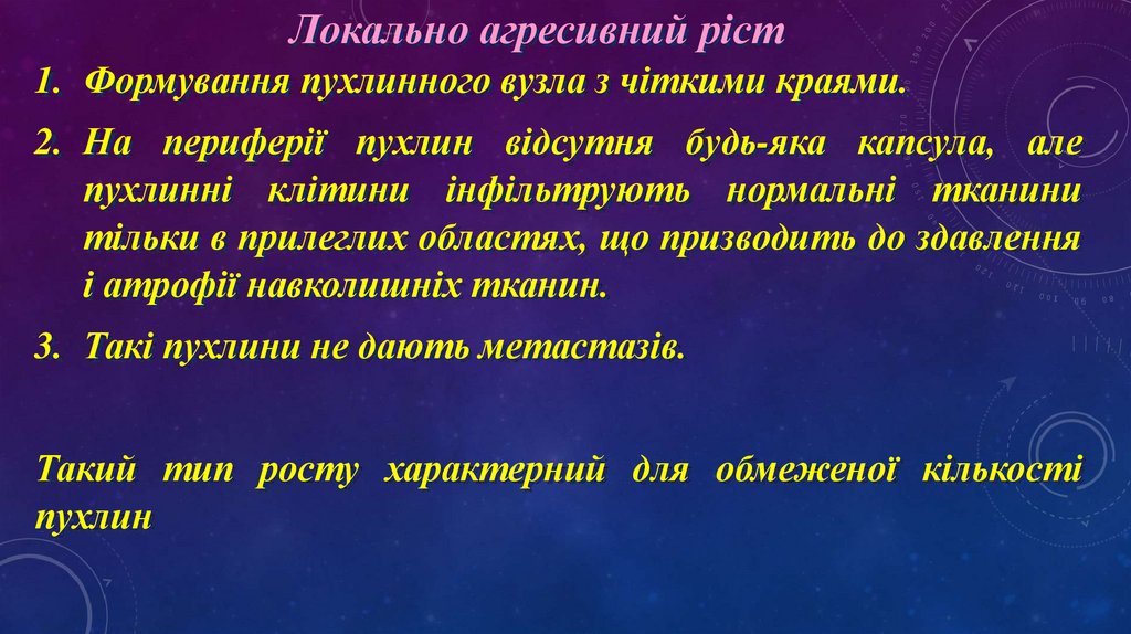 Локально агресивний ріст1. Формування пухлинного вузла з чіткими краями.