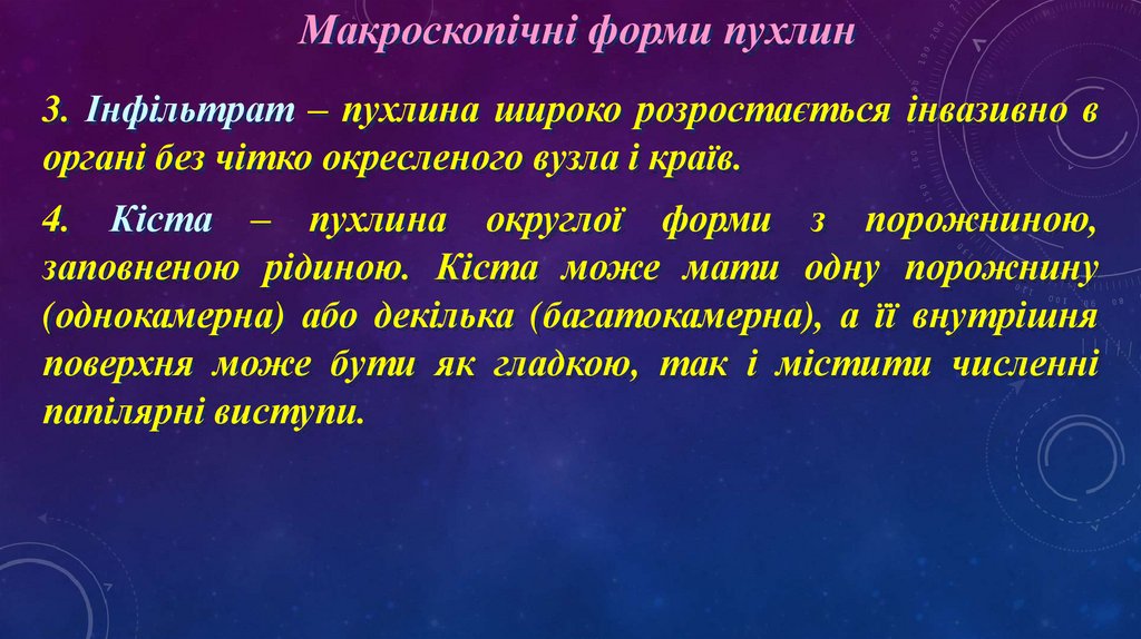 Макроскопічні форми пухлин3. Інфільтрат – пухлина широко розростається інвазивно в