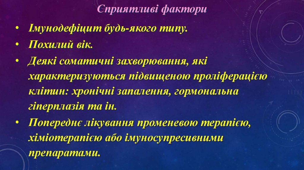 Сприятливі фактори• Імунодефіцит будь-якого типу.