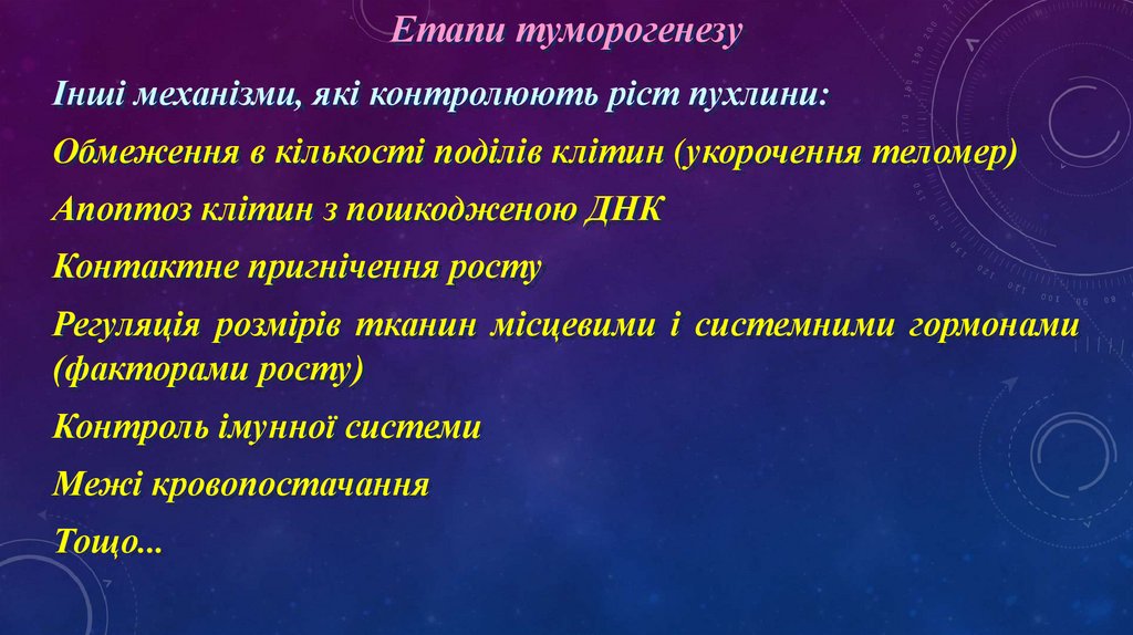 Етапи туморогенезуІнші механізми, які контролюють ріст пухлини: