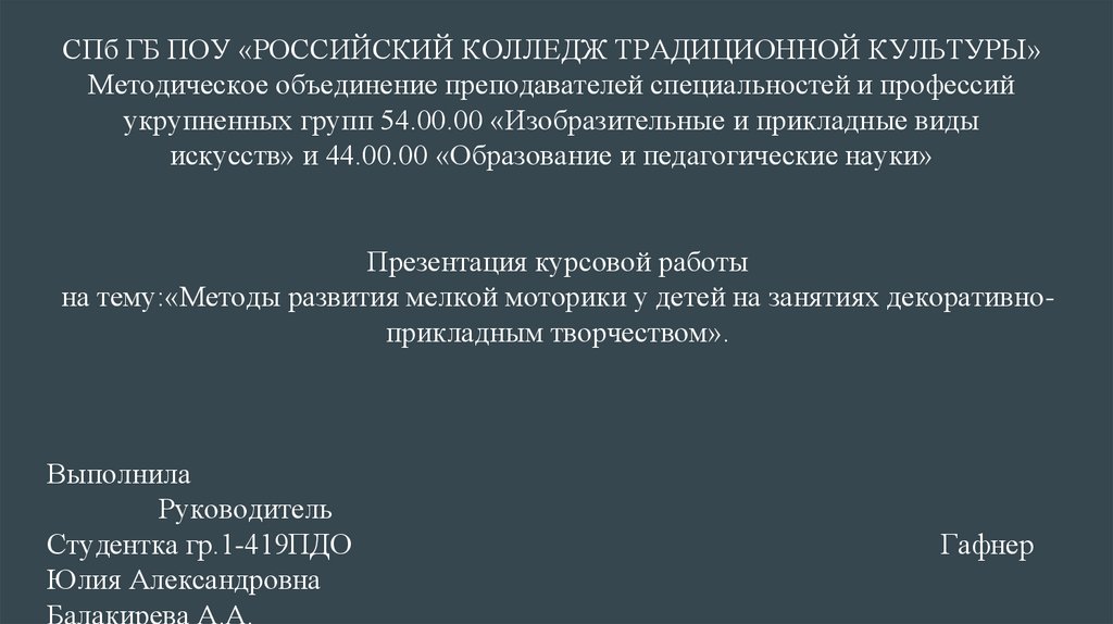 СПб ГБ ПОУ «РОССИЙСКИЙ КОЛЛЕДЖ ТРАДИЦИОННОЙ КУЛЬТУРЫ»Методическое объединение преподавателей специальностей и профессий
