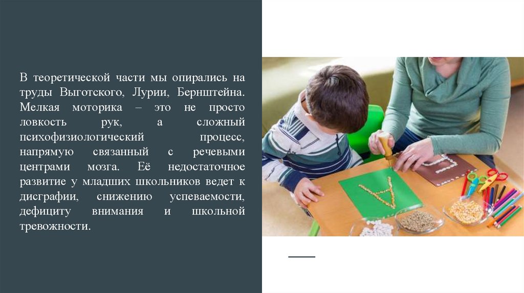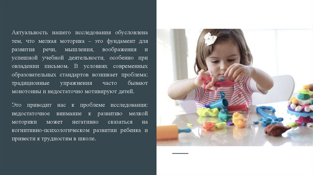 Актуальность нашего исследования обусловленатем, что мелкая моторика – это фундамент для