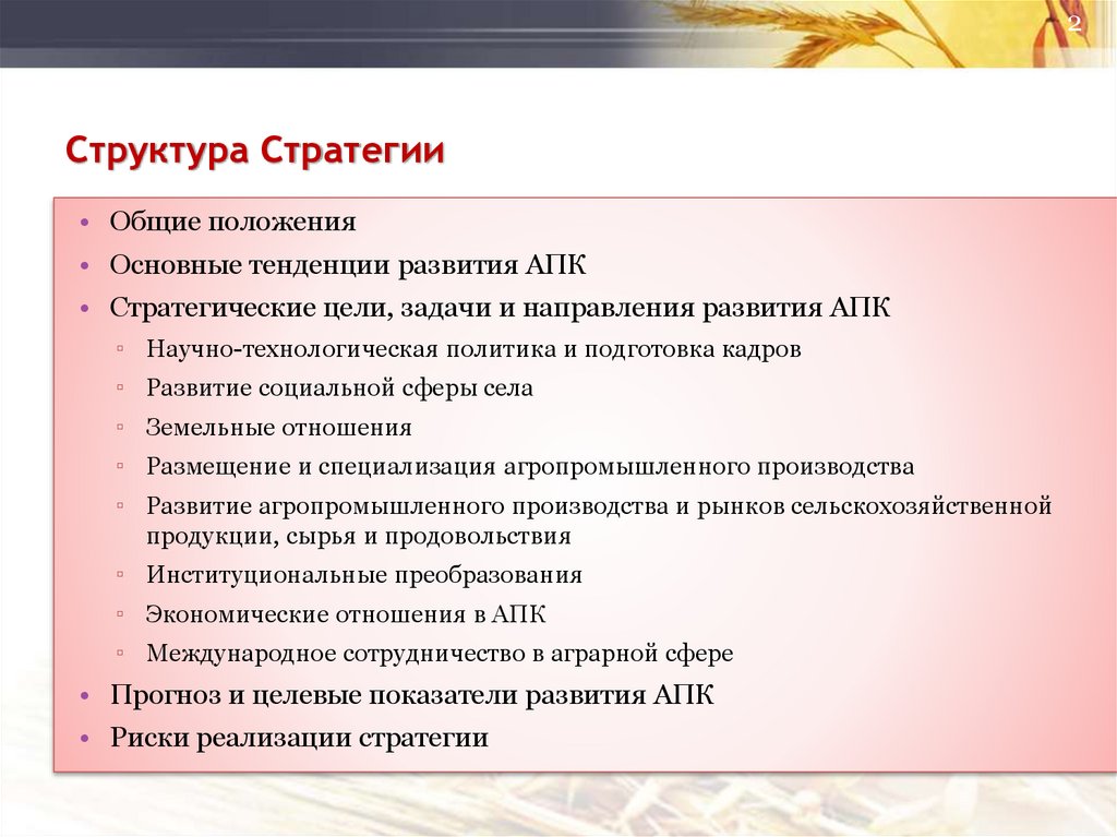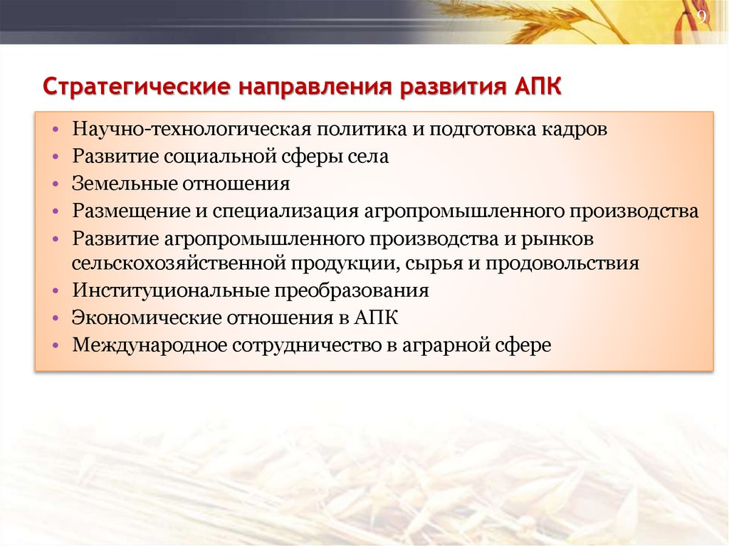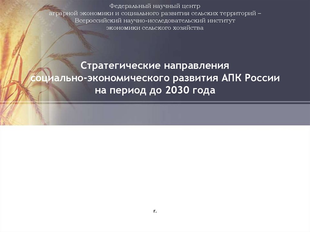 1. Стратегические направления социально-экономического развития АПК России на период до 2030 года