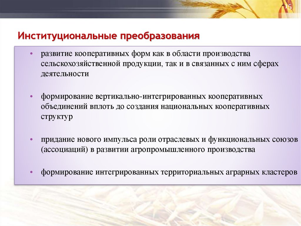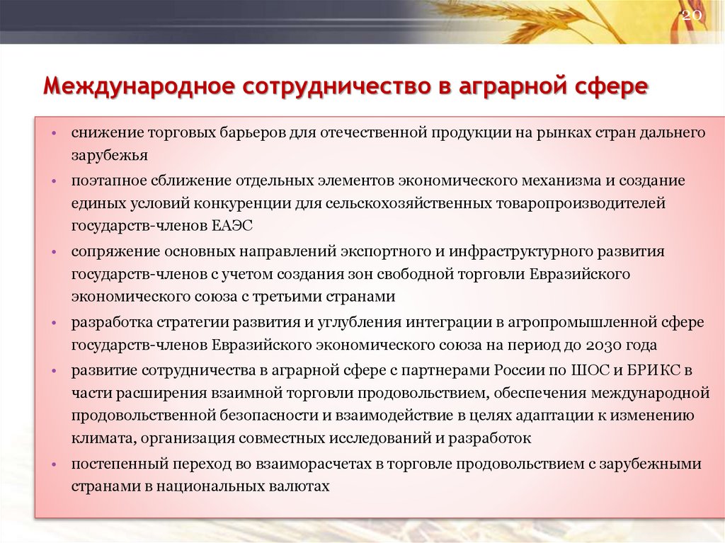 • разработка стратегии развития и углубления интеграции в агропромышленной сфере
