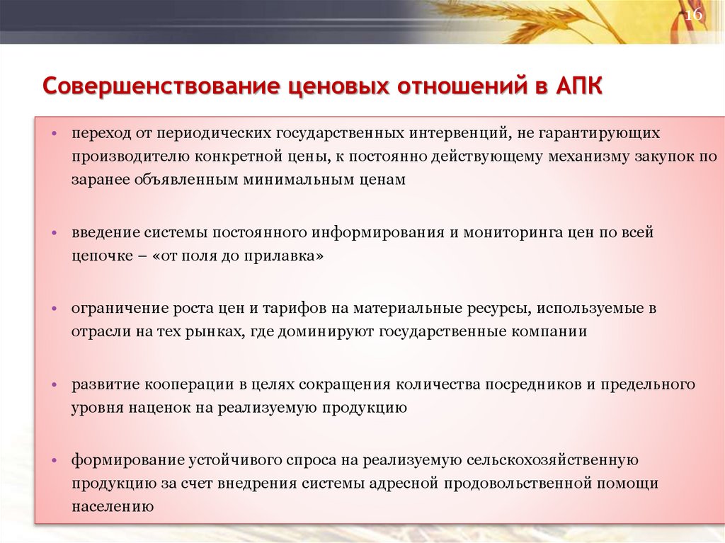 • создание комплексной системы защиты доходов сельскохозяйственных