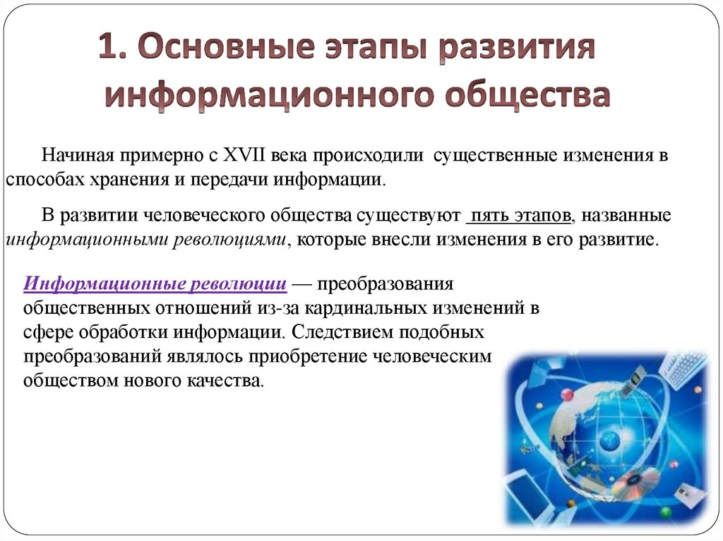 1. Информационная деятельность человека Основные этапы развития информационного общества