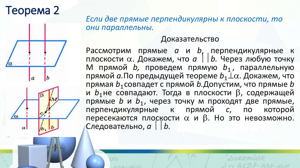 прямой a.По предыдущей теореме b1 . Докажем, что