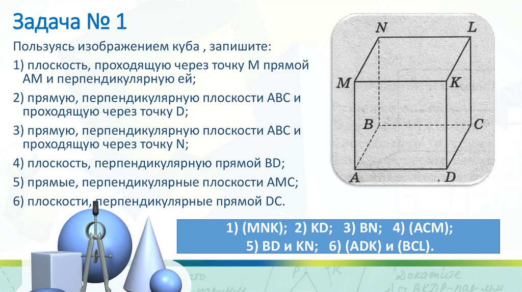 Пользуясь изображением куба , запишите:1) плоскость, проходящую через точку М прямой