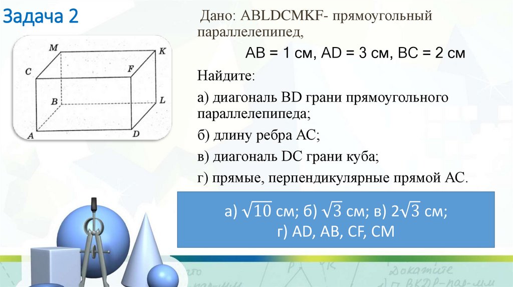 Дано: АВLDCMKF- прямоугольныйпараллелепипед,