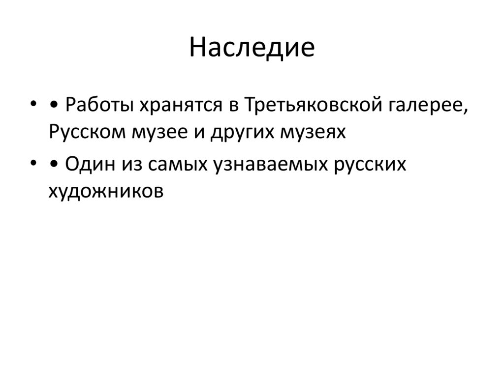 Наследие• • Работы хранятся в Третьяковской галерее,