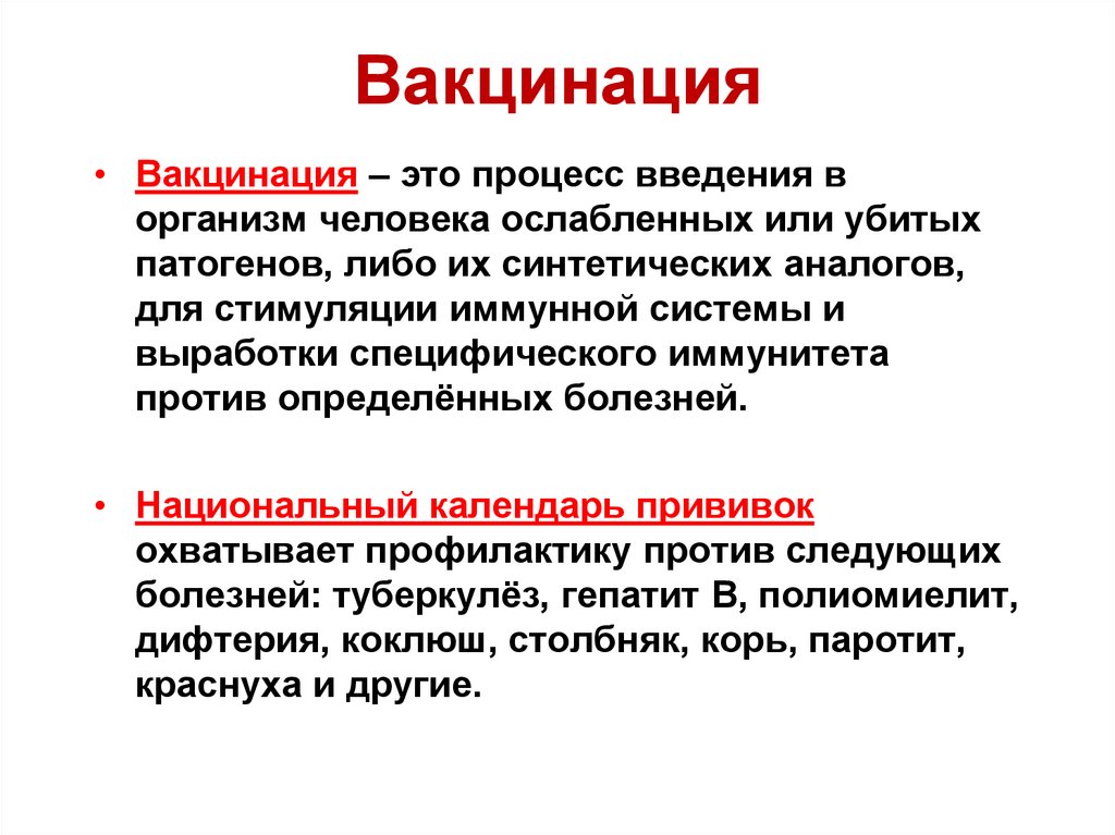• Вакцинация – это процесс введения ворганизм человека ослабленных или убитых