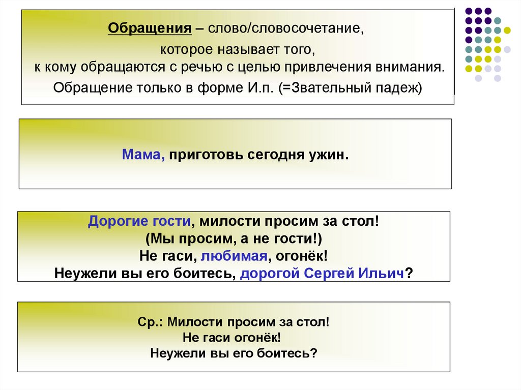 Обращения – слово/словосочетание,которое называет того,