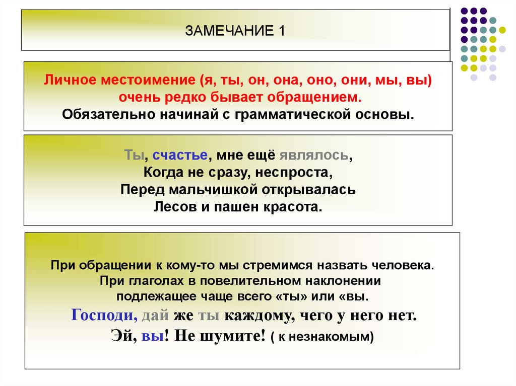 ЗАМЕЧАНИЕ 1Личное местоимение (я, ты, он, она, оно, они, мы, вы)