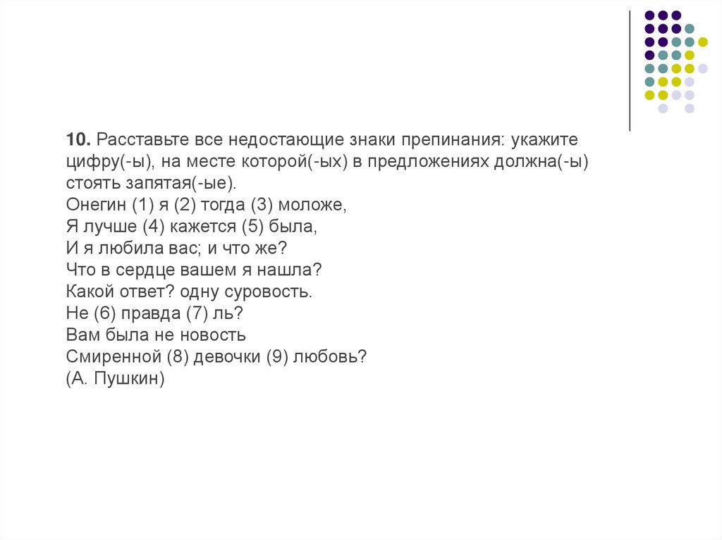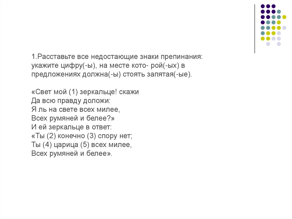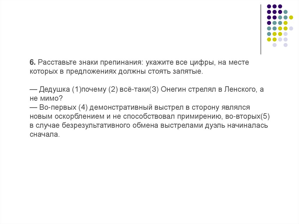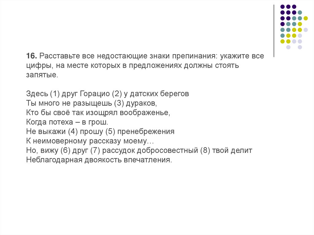 16. Расставьте все недостающие знаки препинания: укажите всецифры, на месте которых в предложениях должны стоять