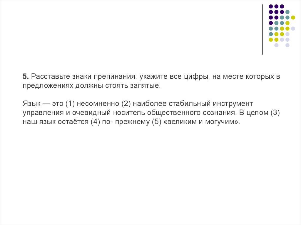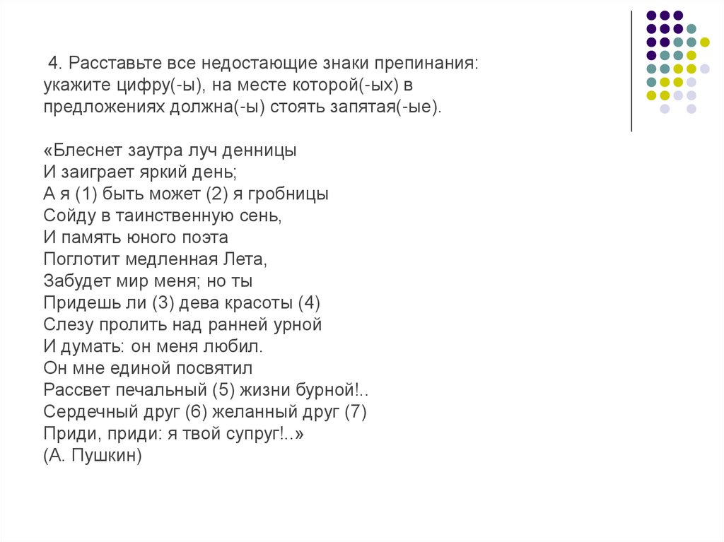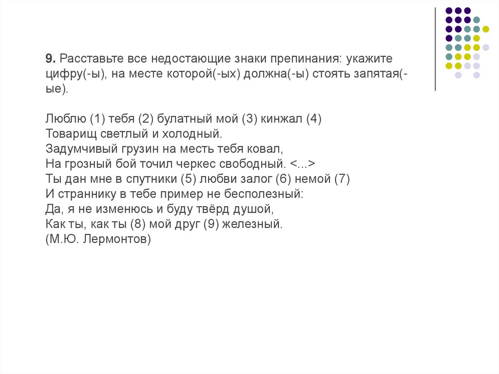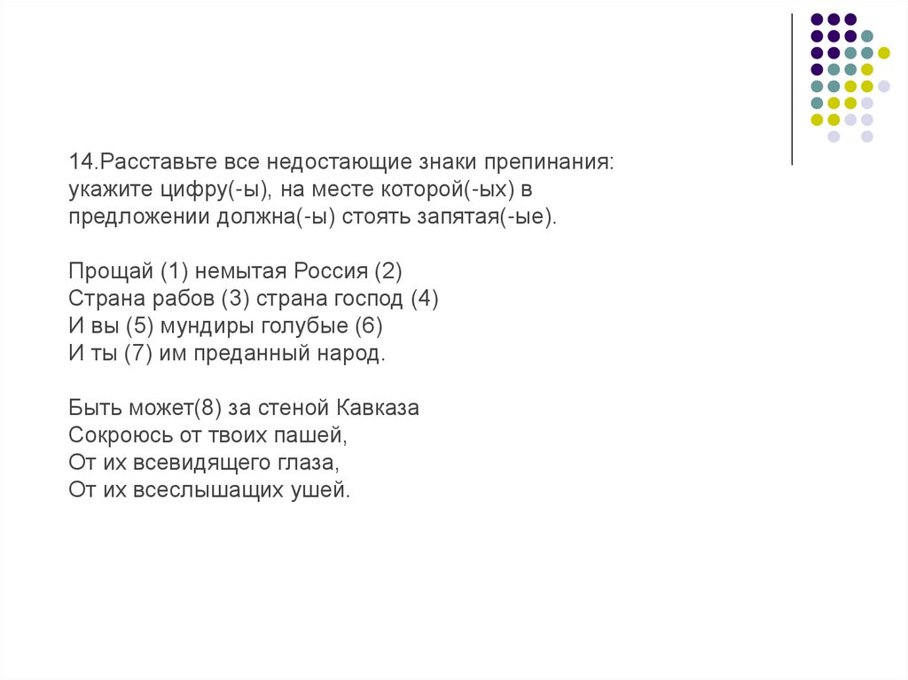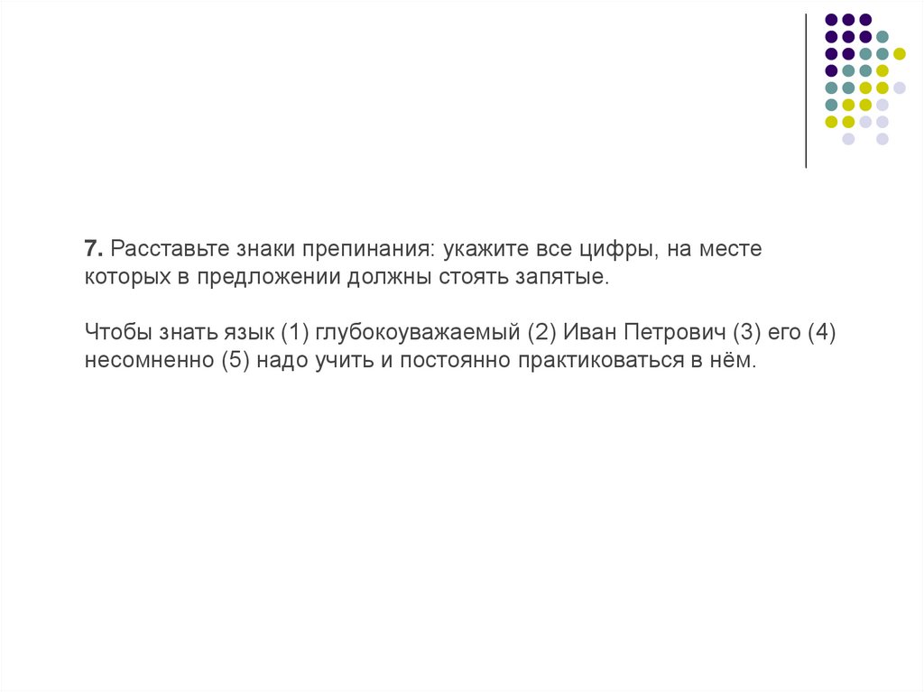 16. Расставьте все недостающие знаки препинания: укажите всецифры, на месте которых в предложениях должны стоять