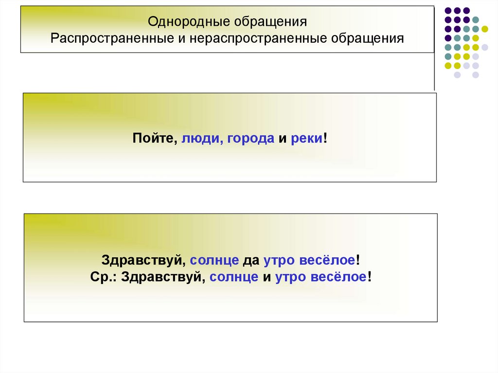 Однородные обращенияРаспространенные и нераспространенные обращения