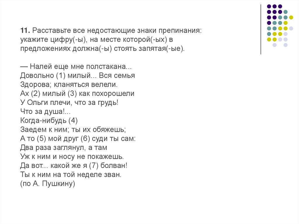 11. Расставьте все недостающие знаки препинания:укажите цифру(-ы), на месте которой(-ых) в