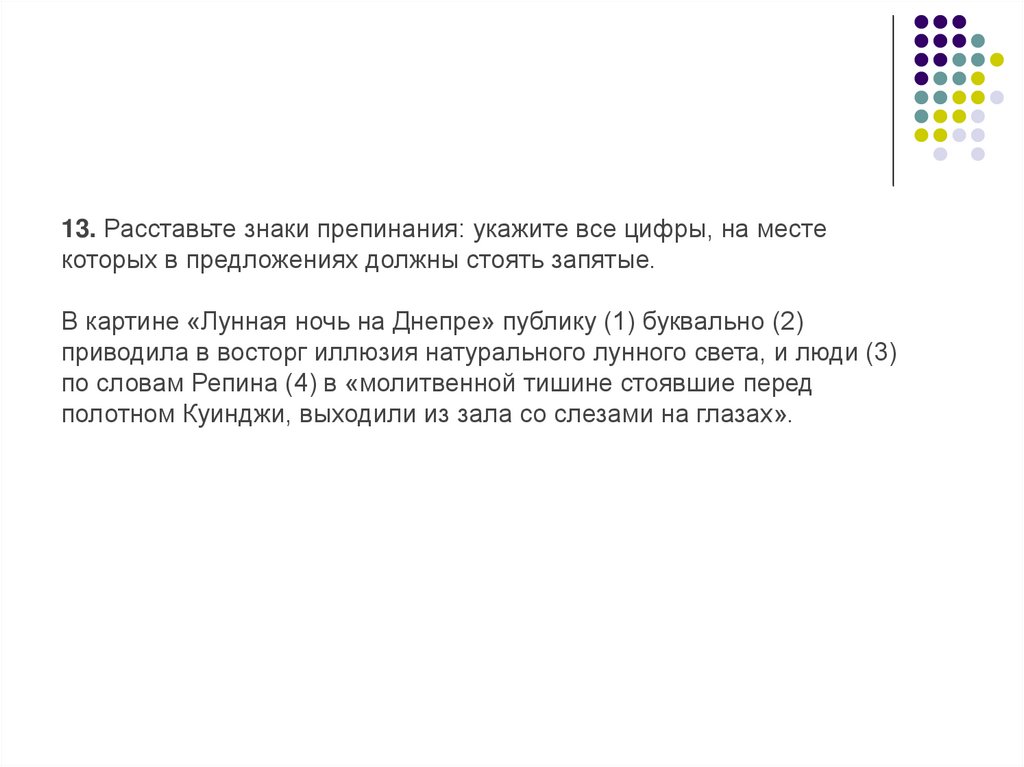 В картине «Лунная ночь на Днепре» публику (1) буквально (2)