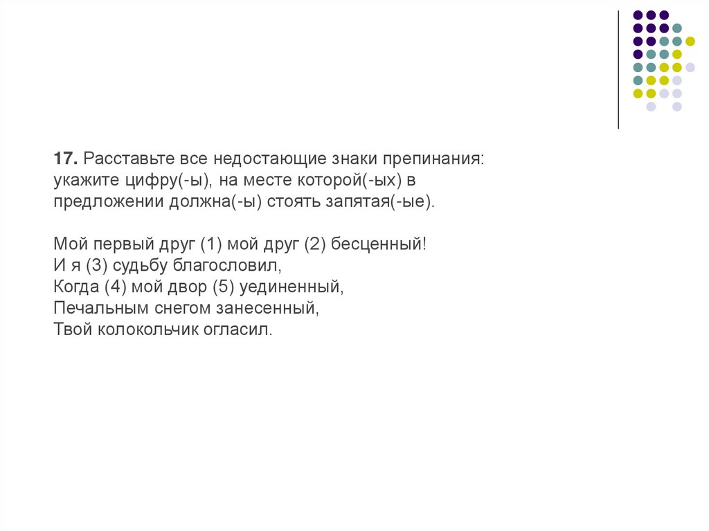17. Расставьте все недостающие знаки препинания:укажите цифру(-ы), на месте которой(-ых) в