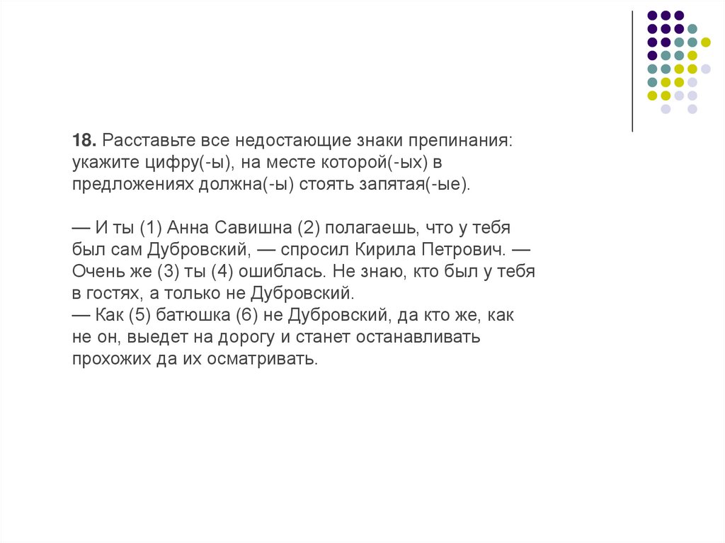 18. Расставьте все недостающие знаки препинания:укажите цифру(-ы), на месте которой(-ых) в