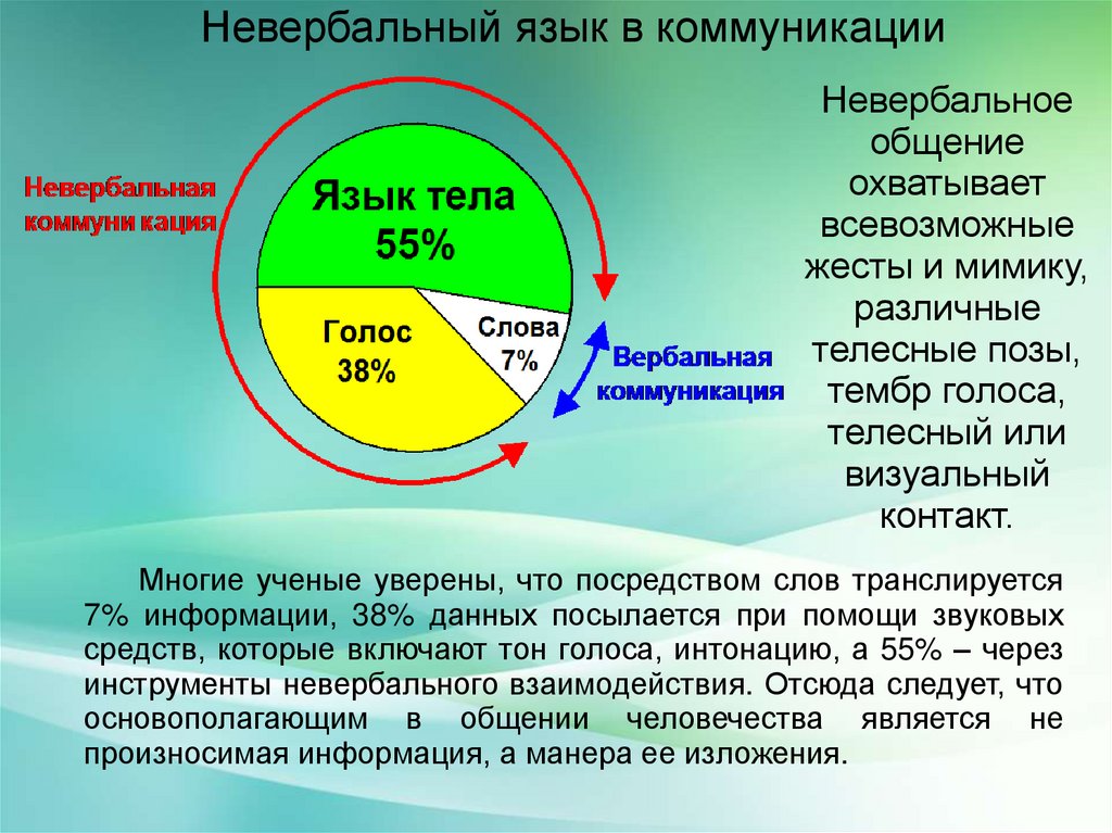 7% информации, 38% данных посылается при помощи звуковых