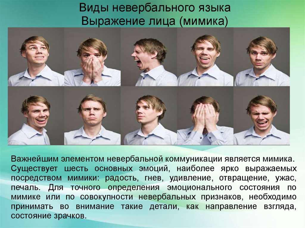 Виды невербального языкаВыражение лица (мимика)