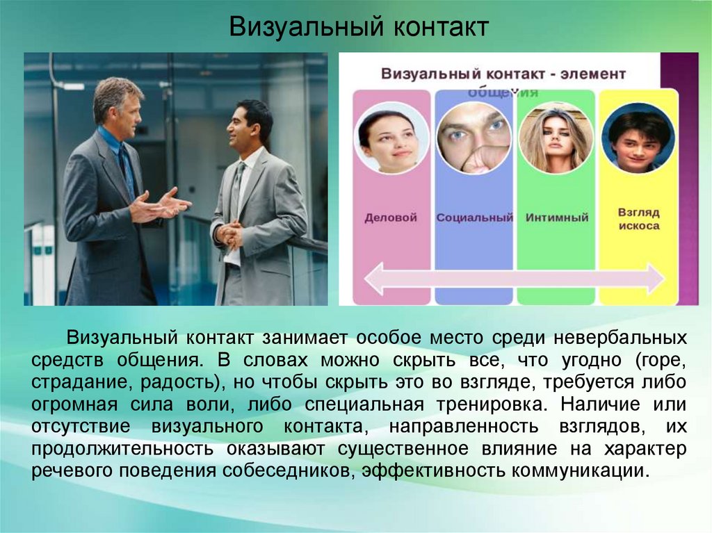 Визуальный контактВизуальный контакт занимает особое место среди невербальных