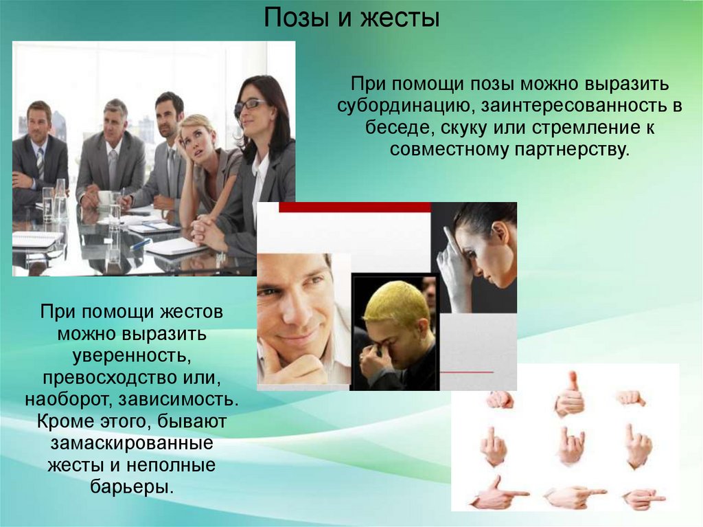 Позы и жестыПри помощи позы можно выразить
