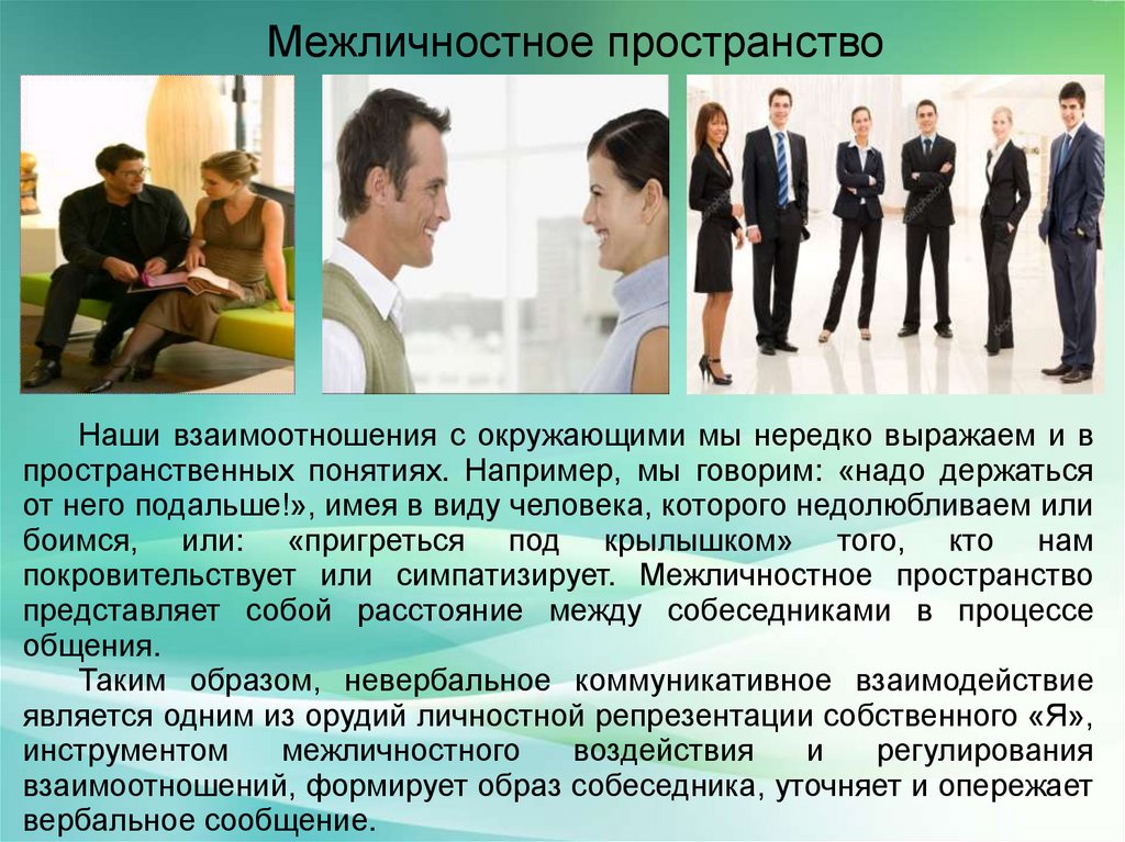 покровительствует или симпатизирует. Межличностное пространство
