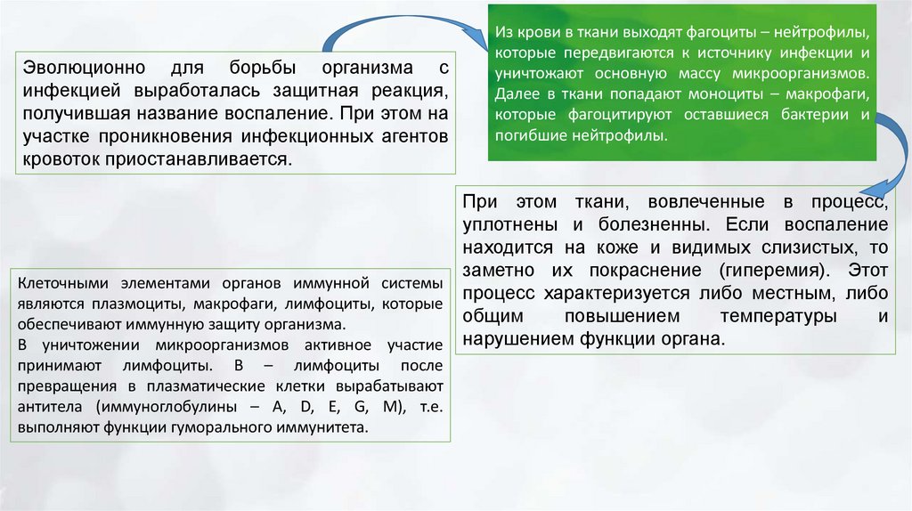 Из крови в ткани выходят фагоциты – нейтрофилы,