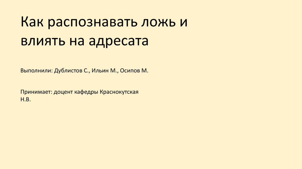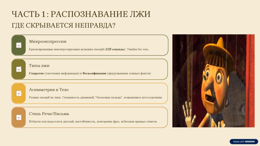 ЧАСТЬ 1 : РАСПОЗНАВАНИЕ ЛЖИГДЕ СКРЫВАЕТСЯ НЕПРАВДА?