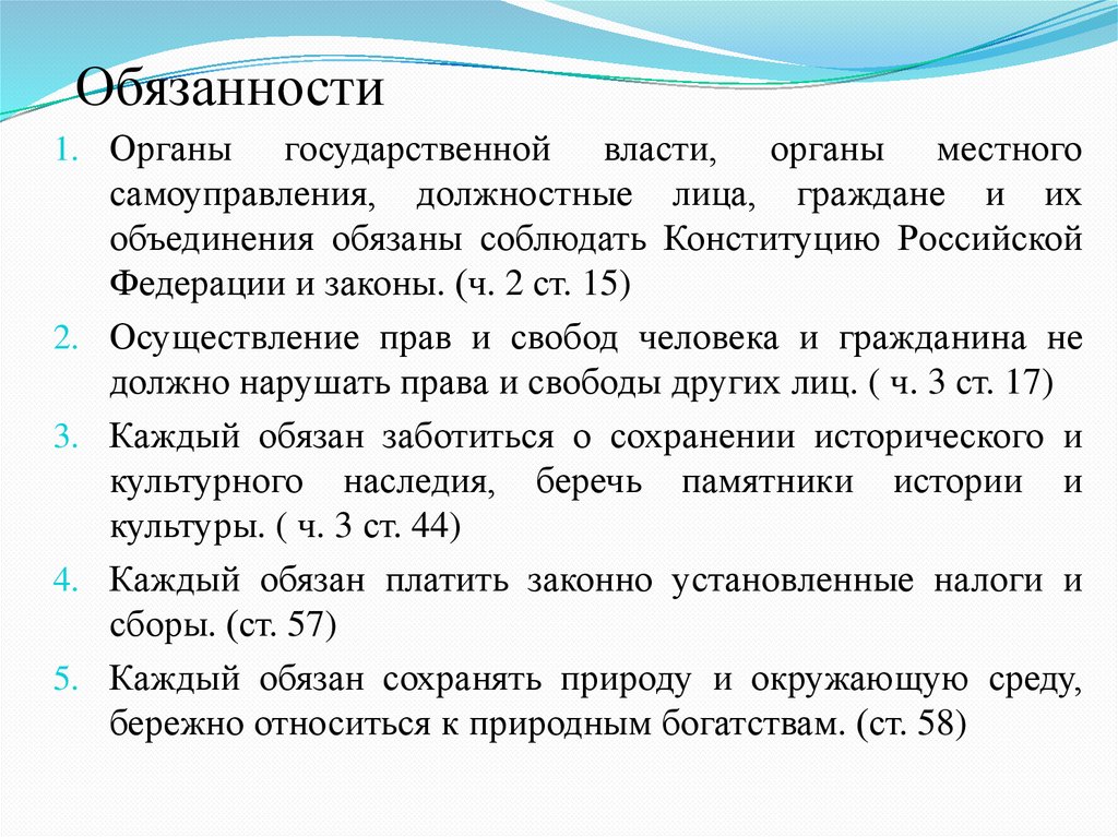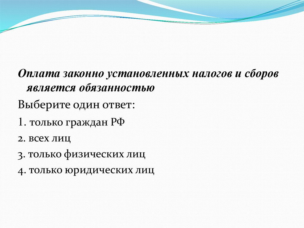 Оплата законно установленных налогов и сборовявляется обязанностью