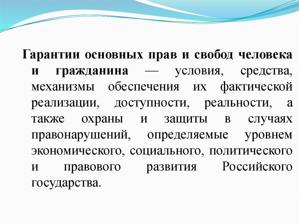 Гарантии основных прав и свобод человекаи гражданина — условия, средства,